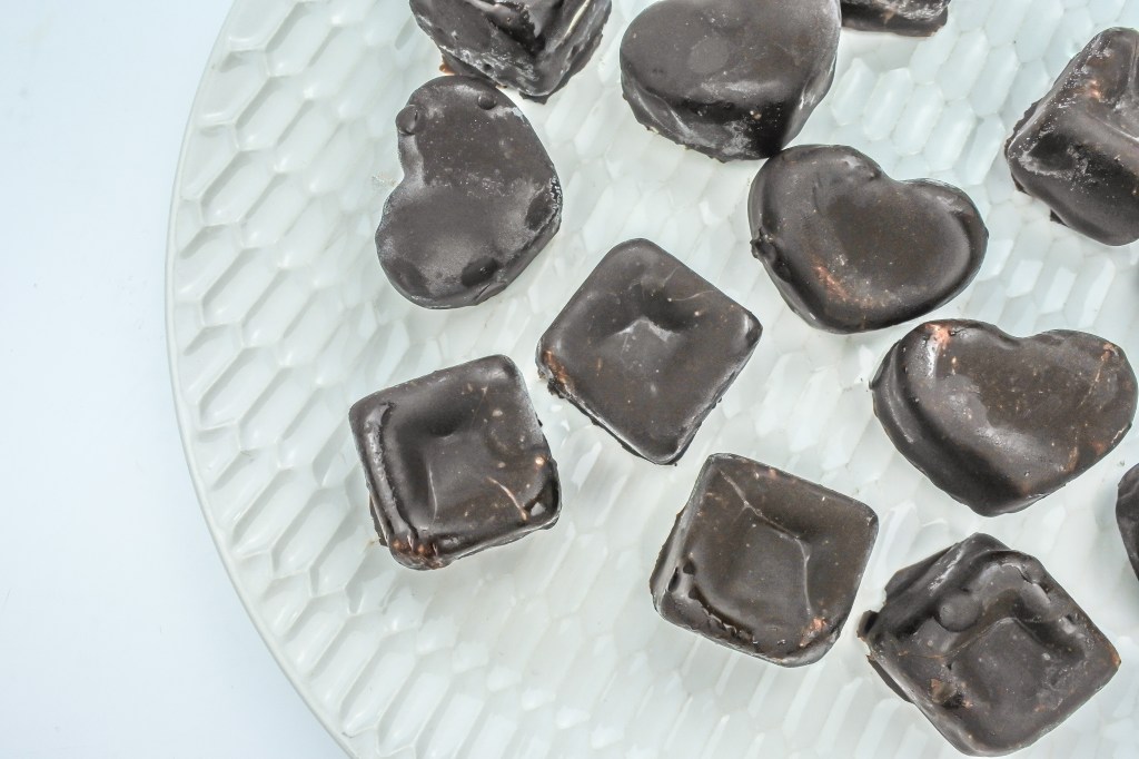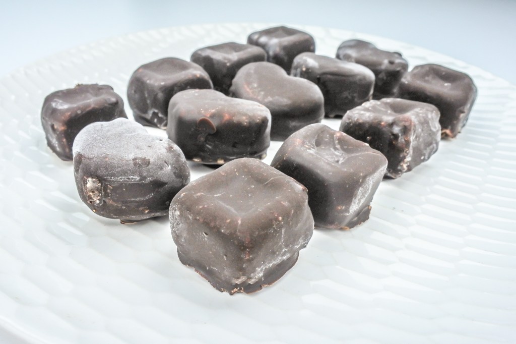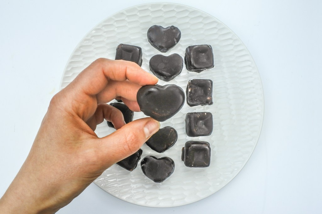Hier braucht es wieder mehrere Stunden, bis die Pralinen komplett fest geworden sind, damit du sie später unbeschadet vom Boden lösen kannst.