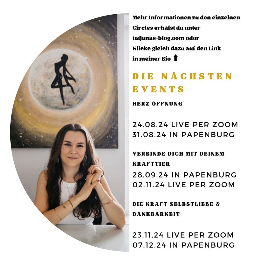 Wie fragst du dich? Schaue mir unbedingt die nächsten Termine meiner kreativen Circles an. Denn da begleite ich dich mit meinen effektivsten Tools, damit du damit deinem Leben die gewünschte & nötige positive Wende selbständig einleiten kannst.