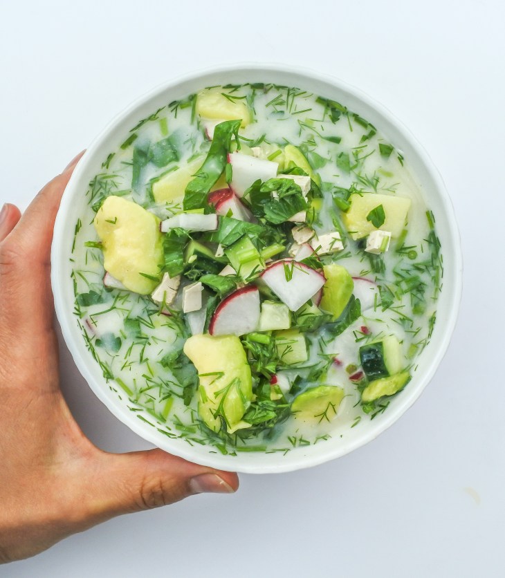 Okroschka, ist ein traditionelles russischen Gericht. Es ist eine kalte Sommersuppe. Und sie schmeckt einfach super köstlich jetzt im Sommer, kühlt dich ab & nährt dich mit frischen Zutaten. Aber überzeuge dich am besten selber.