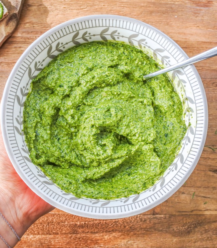 Was ist köstlich, grün und würzig riechend? Natürlich Bärlauchpesto- mein bestes und liebstes Grundrezept ever! Es ist Bärlauch Saison! Meine absolute Lieblingszeit! Deswegen nutze ich sie so gut ich kann und mache viel und oft Bärlauchpesto! Ich sage es Dir es ist der Wahnsinn! Dazu kommt noch, wie einfach es doch ist…paar schnelle Handgriffe und schon ist es fertig. Einfacher geht es kaum. Außerdem ist so ein Bärlauchpesto ein absoluter Allrounder: eignet sich hervorragend als Dip zu Gemüse, zu Kartoffeln, Pasta oder als Brotaufstrich!