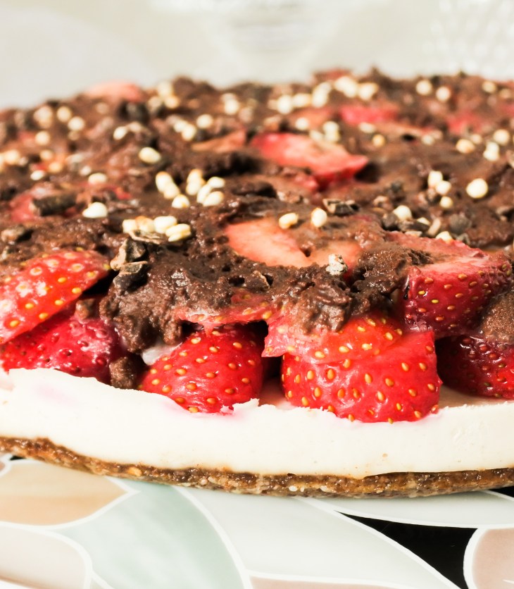 Momentan habe ich eine ganz besondere Vorliebe für „raw cakes“, also ungebackene Kuchen in verschiedensten Variationen. Es ist cremig, fruchtig und es gelingt mir immer, sogar besser als herkömmliche Torten/Kuchen, die man backen muss. Sobald es einen Anlass gibt, wird gemixt und experementiert was das Zeug hält. Diesmal gab es eine fruchtige und leichte Erbeertorte und als absolute Krönung oben drauf bisschen Schokolade!