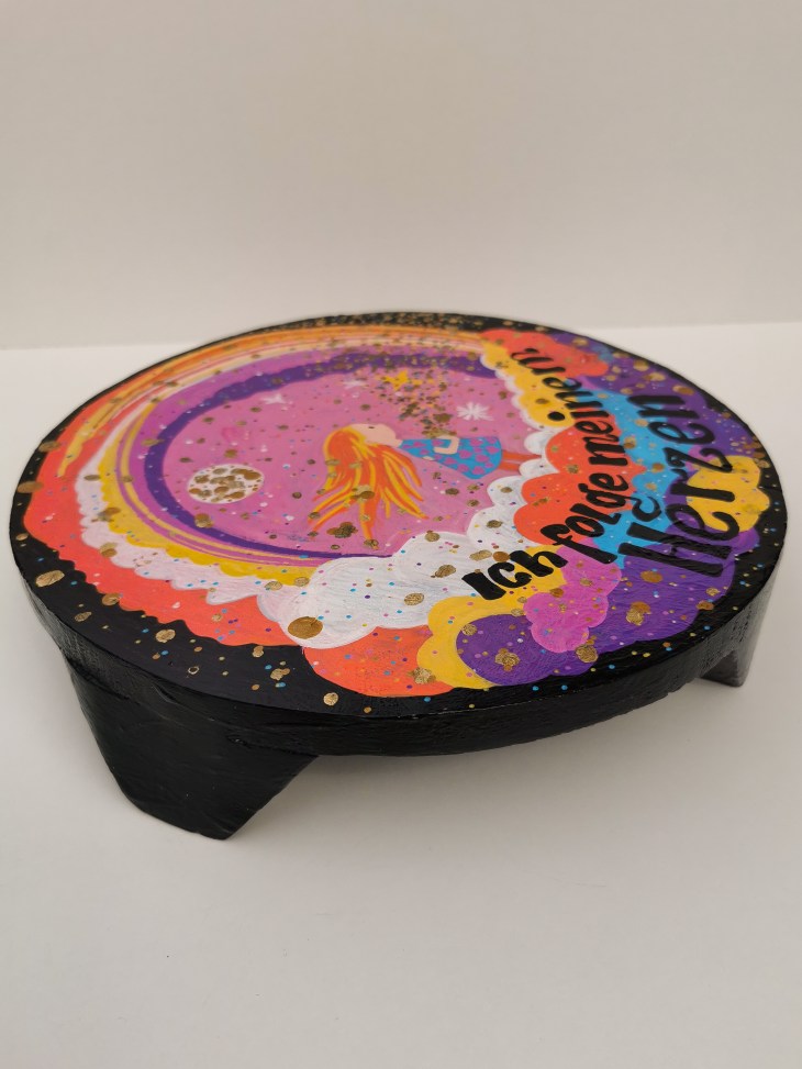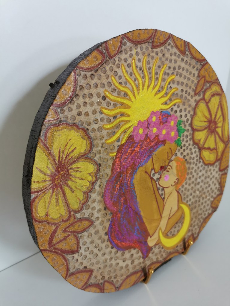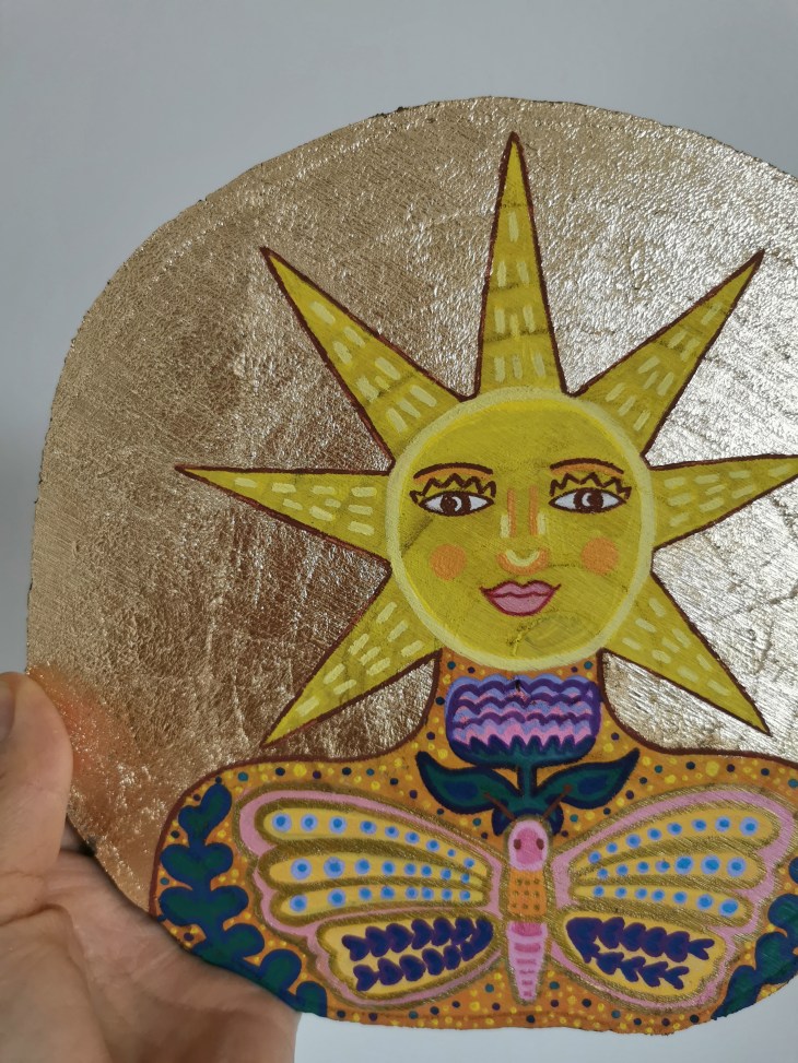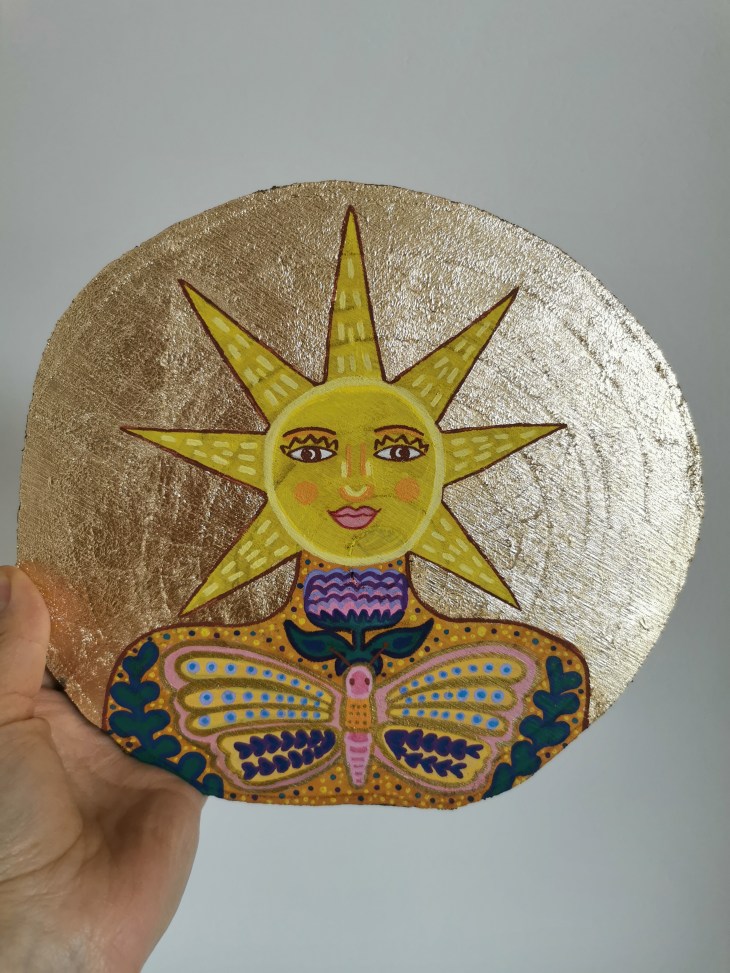 Erlebe die Vielfalt meiner originalen Kunstwerke, die mit Acryl auf Holz und Modelliermasse gestaltet wurden.