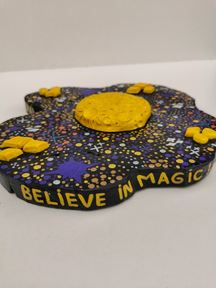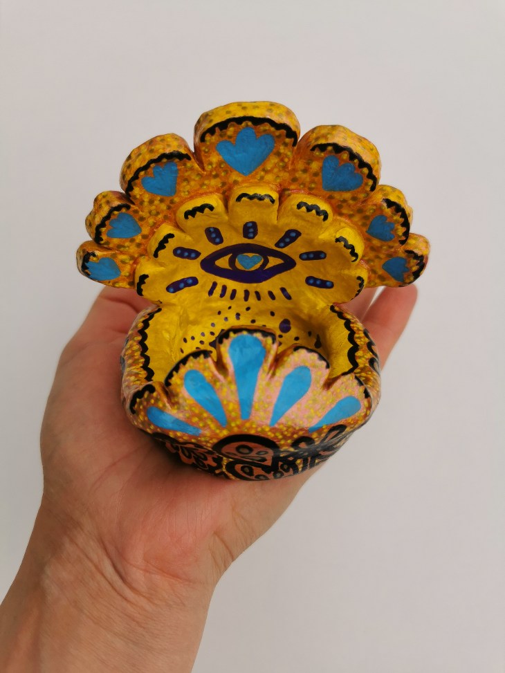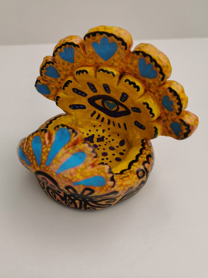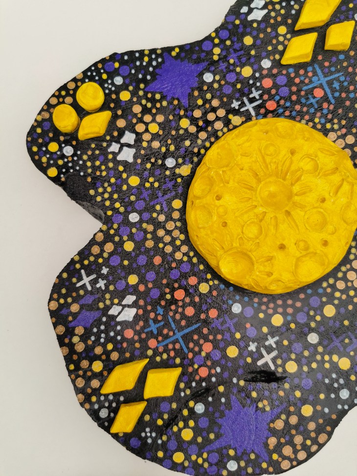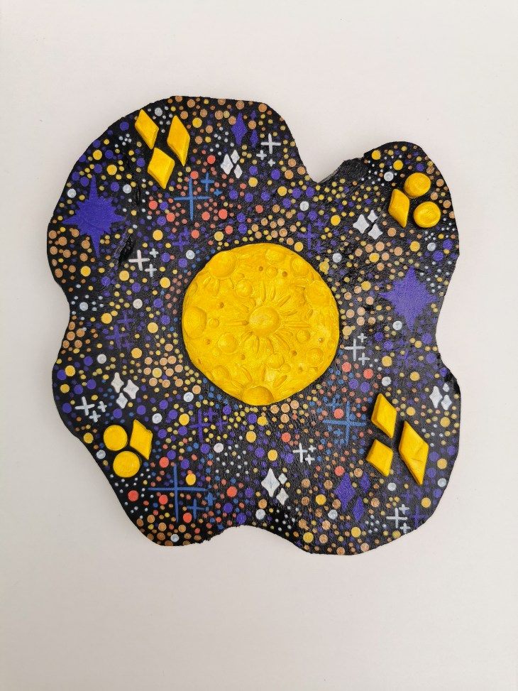 Erlebe die Vielfalt meiner originalen Kunstwerke, die mit Acryl auf Holz und Modelliermasse gestaltet wurden.